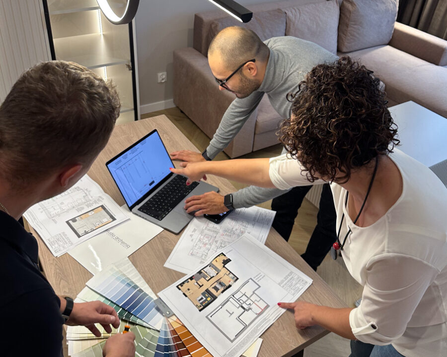Architekt, wykonawca i stolarz: trzy osoby w jednej branży, których zawodowe ścieżki się skrzyżowały. Połączyliśmy siły aby dać Ci gotowy, kompleksowy produkt i opiekę na najwyższym poziomie. Zapał, chęć rozwoju i satysfakcja z dobrze wykonanej pracy motywują nas do dalszego działania i świadczenia coraz lepszych usług wykończenia wnętrz.